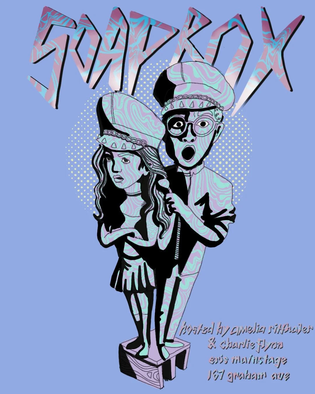 poster for "soapbox" at brooklyn comedy collective. may 2023.