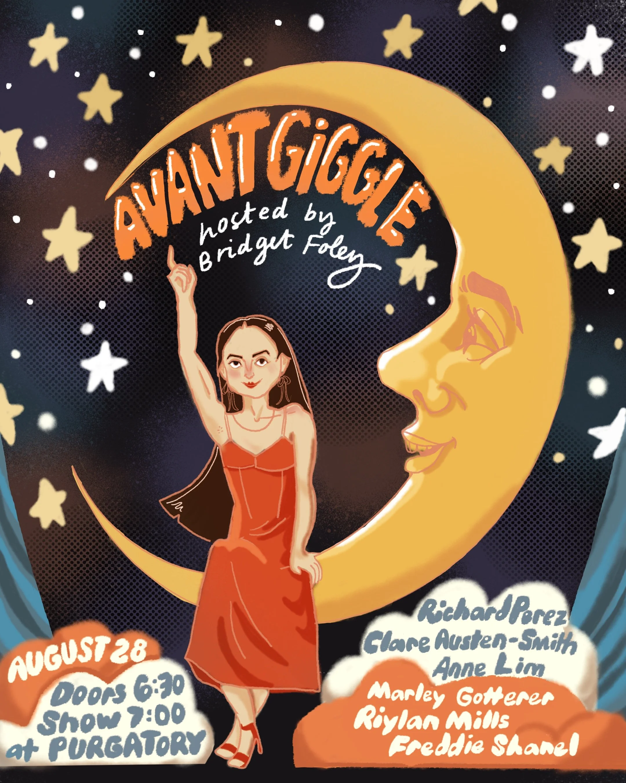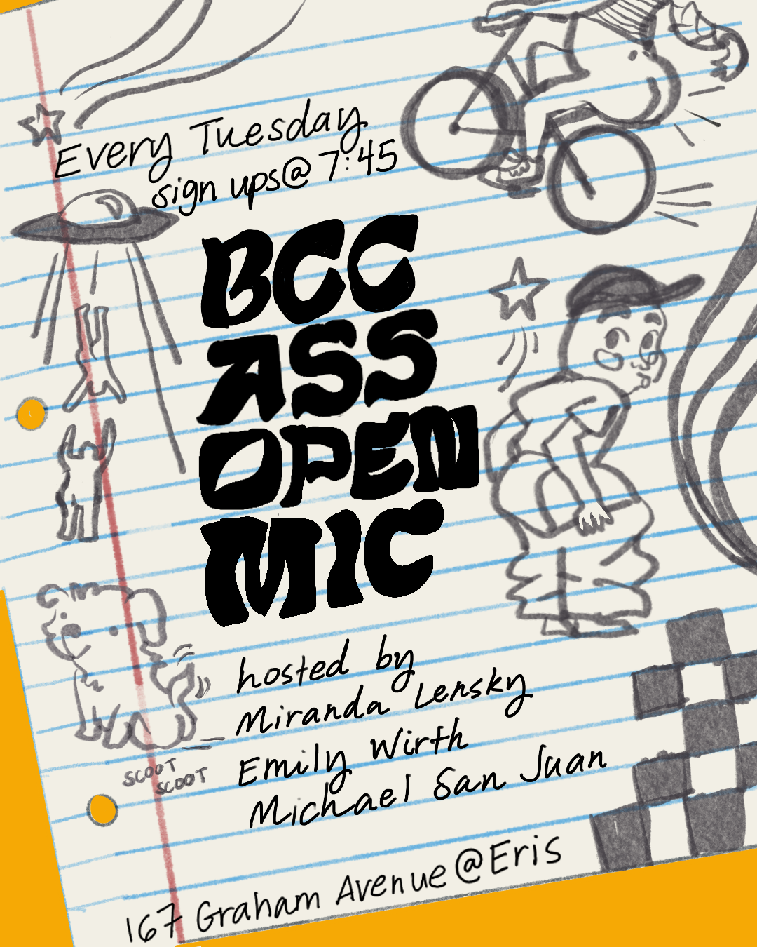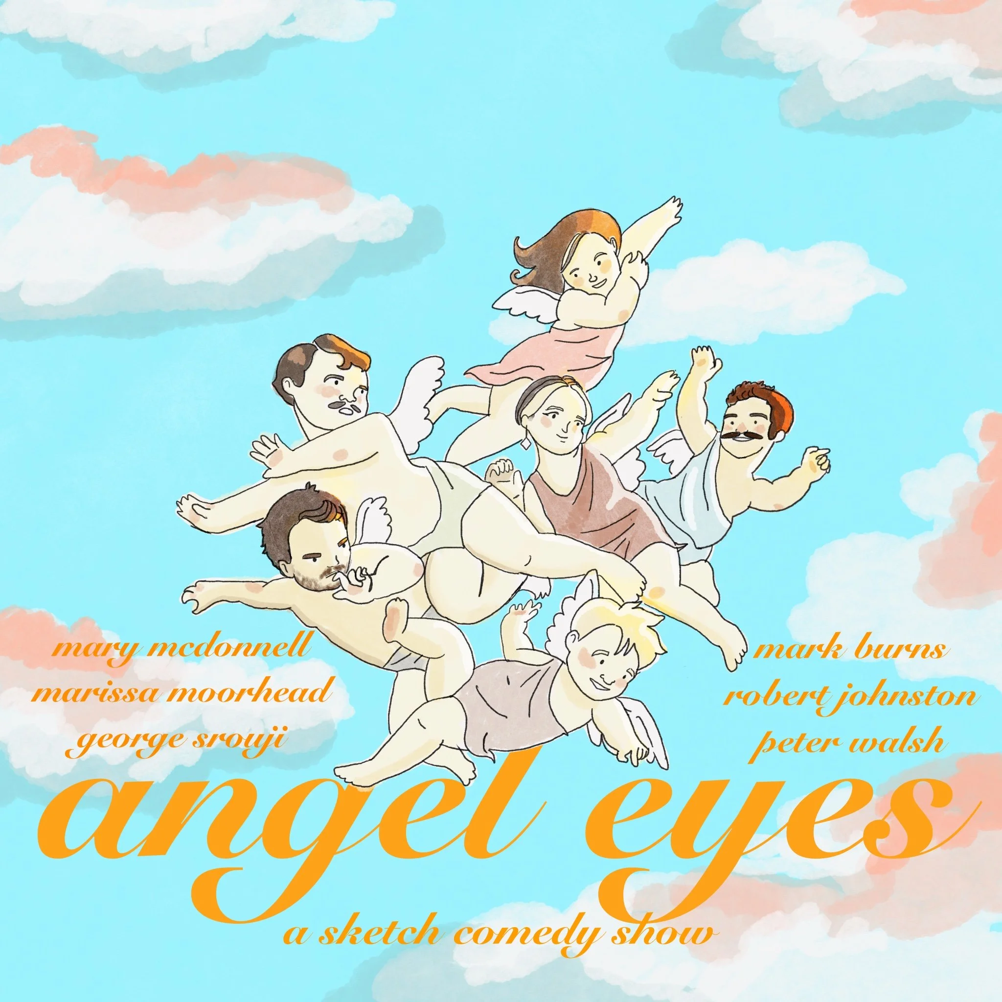 poster for "angel eyes" at brooklyn comedy collective. may 2023.